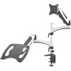 для мониторов, 15-27", 2 монитора, настольный, поворотный, с регулировкой высоты, струбцинное крепление, наклон 90°, поворот 180°, цвет серебристый