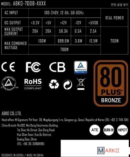 Markit » Блоки питания » Блок питания Abkoncore Tenergy TN-700 Bronze