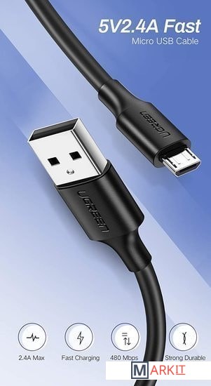 USB-кабель Ugreen поддерживает технологию быстрой зарядки. Для устройств с поддержкой QC 2.0 / 3.0 мощность до 18 Вт (12 В / 1,5 А, 9 В / 2 А, 5 В / 2 А).Для стандартных устройств без QC 2.0 / 3.0, выход до 5 В / 2.4 A.Передача файлов со скоростью 480 Мбит/с.