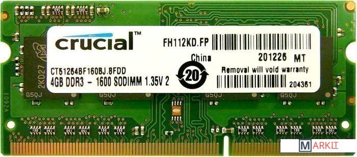 Markit » Оперативная память » Оперативная память Crucial 4GB DDR3 SO-DIMM PC3-12800 (CT51264BF160BJ)