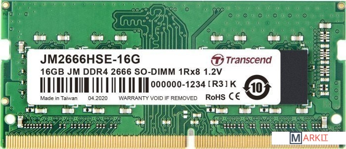 Markit » Оперативная память » Оперативная память Transcend JetRam 16GB DDR4 SODIMM PC4-21300 JM2666HSE-16G