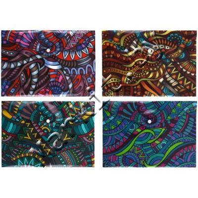 Папка-конверт пластиковая на кнопке Ethnics, толщина пластика 0,18 мм, ассорти Код: 32875