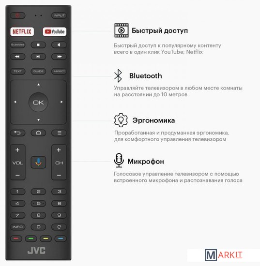 Пульт в комплекте JVC RC10 – черный с голосовым управлением и кнопками Netflix, YouTube